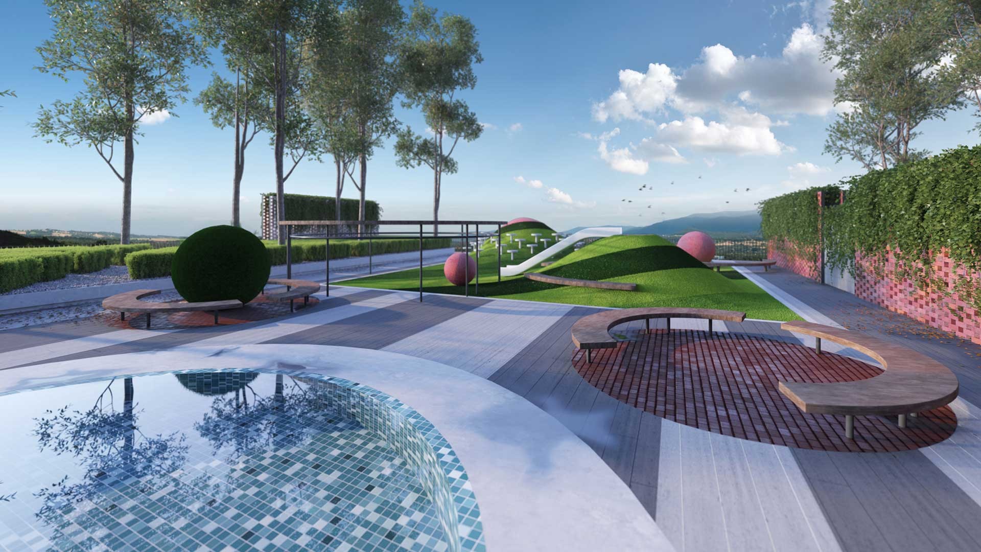 Grene Park Village is a new concept in Lifestyle Suites for the trendy NewGen urbanites. Grene Park Village is one of a kind curated retail space in the park. On the other hand, the new socialplace of Greater KL South - a place where people can meet, rest, dine, shop and play, in the setting of a lush tropical park. Lush tropical park with lifestyle amenities. A panoramic view of lush greenery with forests, gardens, tea pavilions, decks, lake, cascading brook, outdoor performance & theatre space, picnic terrace, kids nature play, jogging trail and so on.